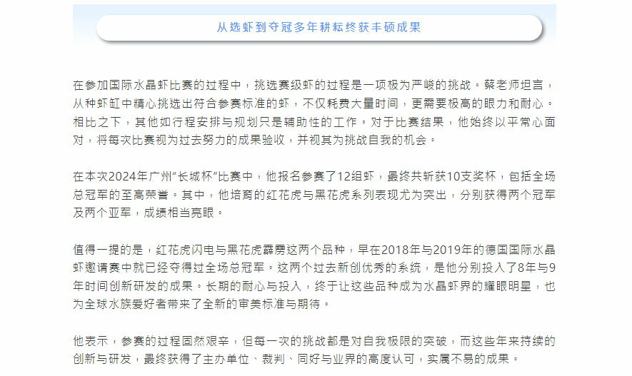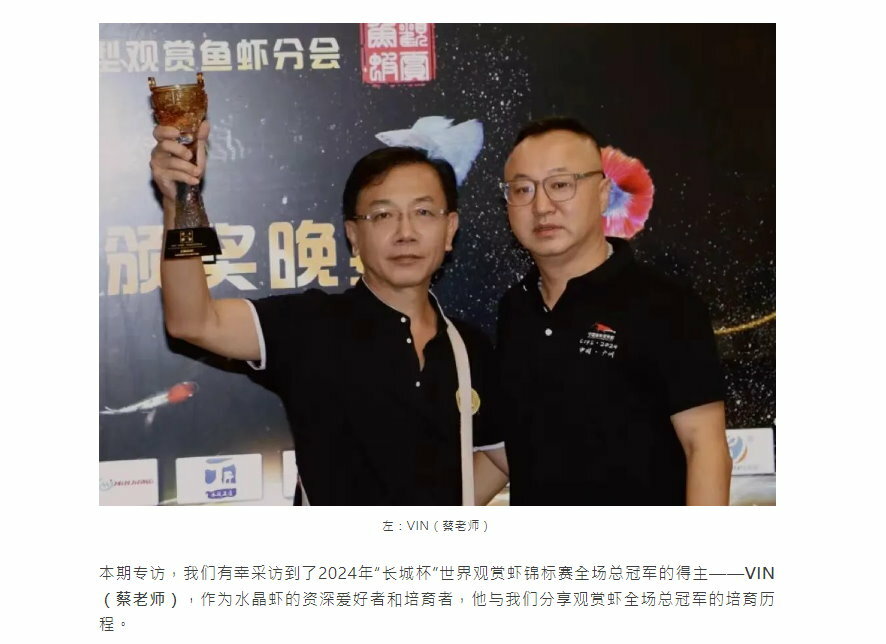 2024年中國廣洲長城杯水晶蝦國際邀請賽總冠軍訪談內容如後:
