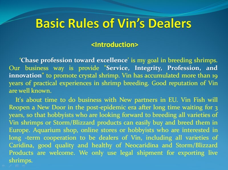 If you are interested in our all variety shrimps or our products related to breeding shrimps, we wholeheartedly welcome and invite you to be our dealers. Wanted aquarium dealers from different countries, including Aquarium shop, WebShop or hobbyists!